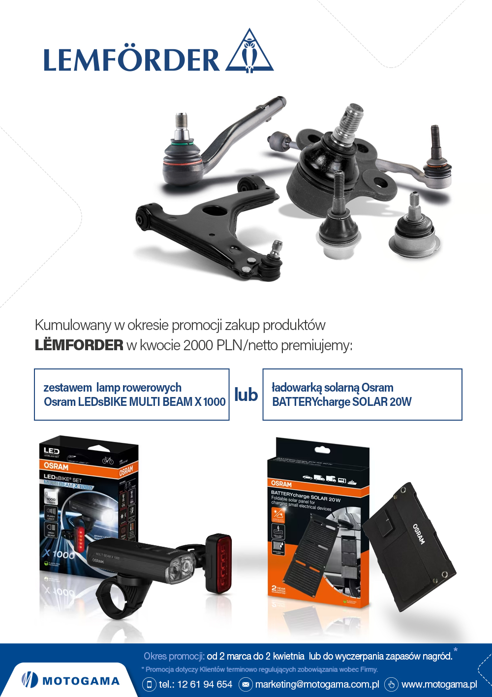 Kumulowany w okresie promocji zakup produktów LËMFORDER w kwocie 2 000 PLN/netto premiujemy: